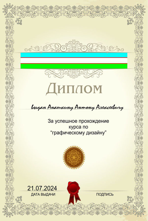Прошел курсы по обучению графического дизайна по окончании курса получил диплом.